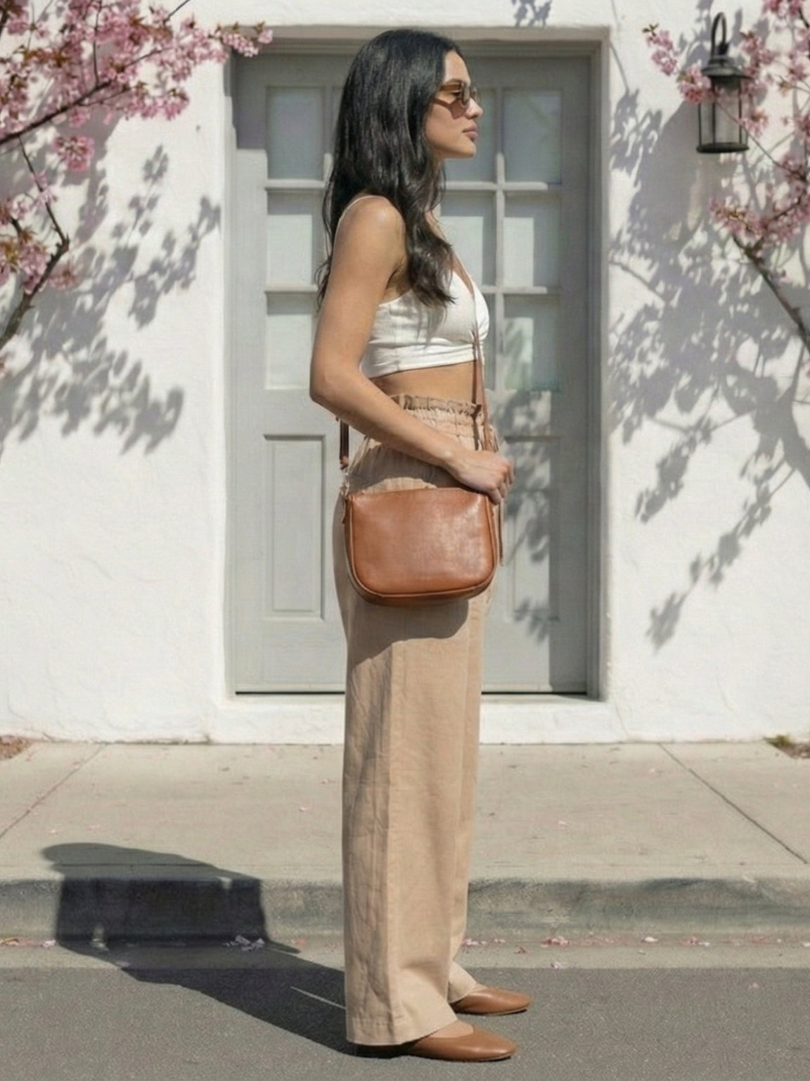 Cut from a premium breathable linen blend, the wide-leg silhouette ensures you stay cool and comfortable, whether you're navigating a busy workday or exploring a new city on vacation. The neutral sand-beige tone pairs seamlessly with everything from crisp white shirts to boho crochet tops.