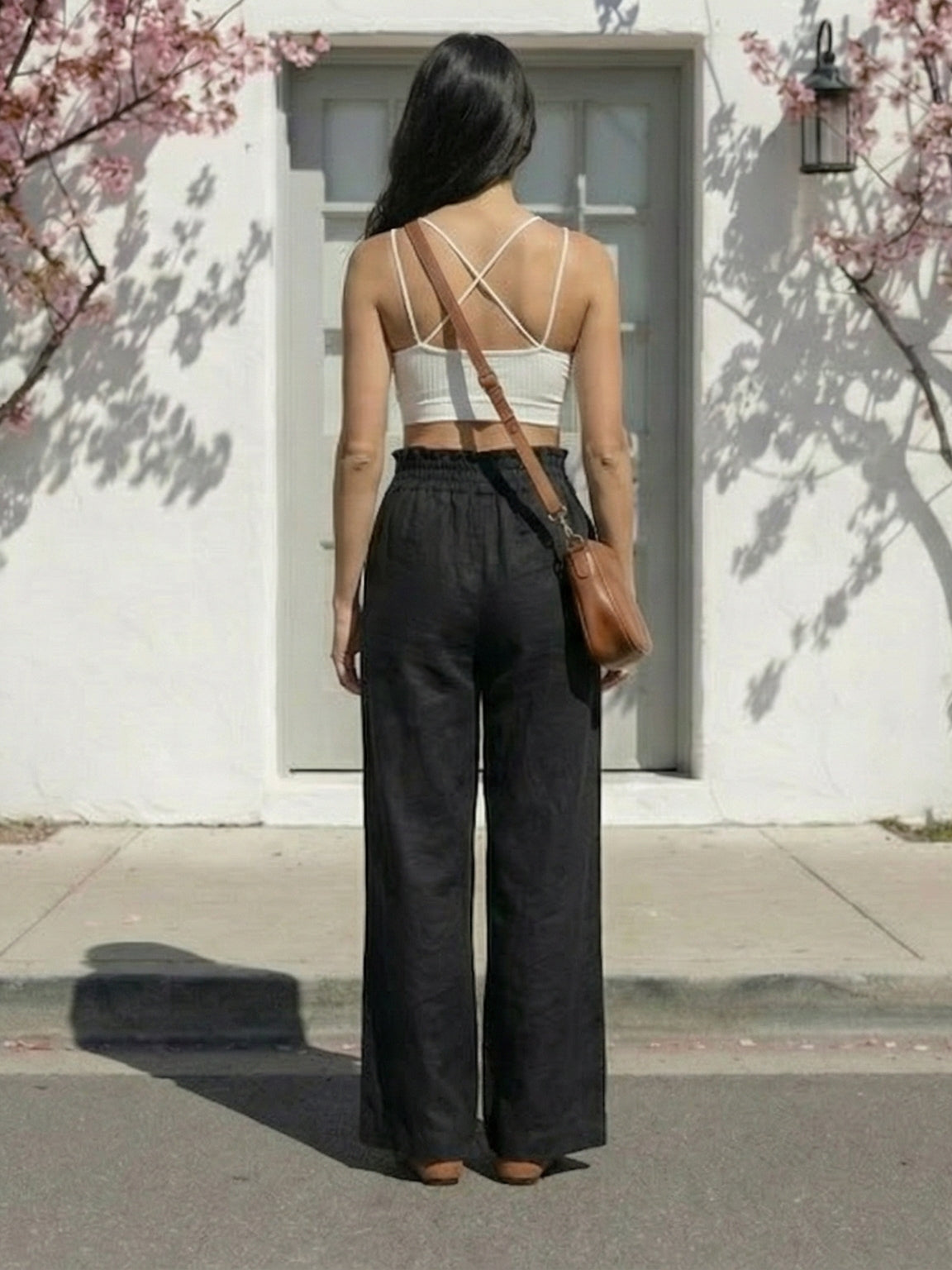 Meet your wardrobe's new best friend. Our Black High-Rise Paperbag Trousers are designed to bridge the gap between "polished office wear" and "relaxed weekend style." Featuring the trending wide-leg silhouette that is dominating 2025 fashion, these trousers offer a universally flattering fit for every body type.